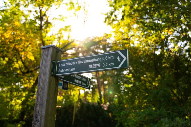Zur Gaststätte „Buhnenhaus“ mit einer Anlegestelle und Bootsliegeplätzen an der Havel sind es ca. 250m, von dort aus sind es bis zur Mündung der Havel (mit Leuchtturm) in den Breitlingsee ca. 200m.